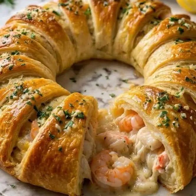 When you want an appetizer that looks like it came straight from a gourmet bakery but takes very little effort to assemble, this Cheesy Seafood Crescent Ring is the answer. There is something incredibly satisfying about breaking into a warm, flaky, golden-brown crescent crust to find a rich and creamy seafood center. It’s the kind of dish that guests stop and take pictures of before they dive in!